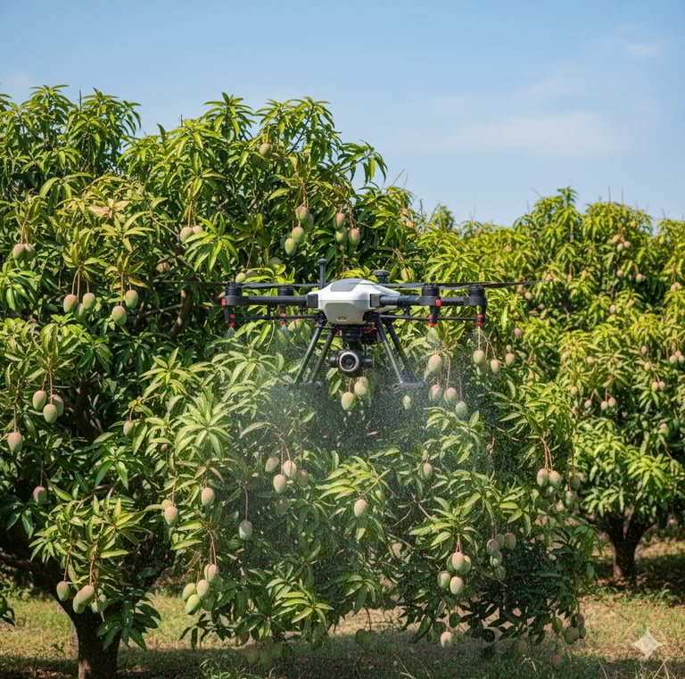 Our drone spraying services use DGCA-approved UAVs (Unmanned Aerial Vehicles) to ensure precise and uniform application of pesticides, fungicides, and fertilizers.
